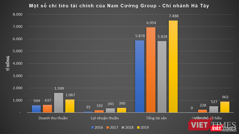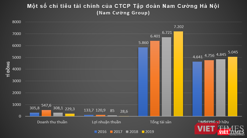 Dữ liệu của VietTimes cho thấy, vài năm gần đây, kết quả kinh doanh của Nam Cường Group có phần sụt giảm, tuy nhiên quy mô tài sản vẫn tăng trưởng đều đặn.