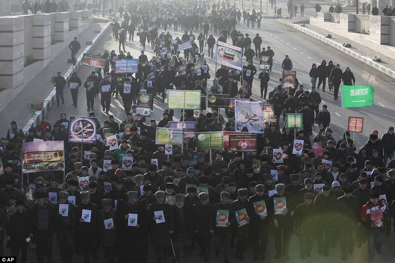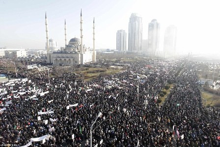 Theo con số thống kê của Bộ Nội vụ Nga cho biết đã có hơn 800.000 người tham gia cuộc tuần hành tại thủ phủ Grozny. Những người biểu tình hô vang Thánh Allah vĩ đại” và thả bóng bay lên bầu trời.