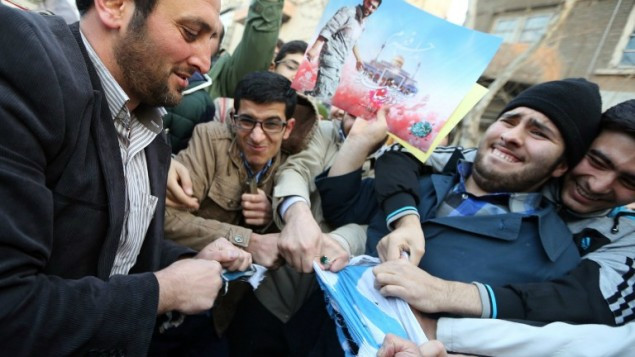 Sinh viên Iran phẫn nộ khi biểu tình trước Đại sứ quán Pháp ở Tehran.