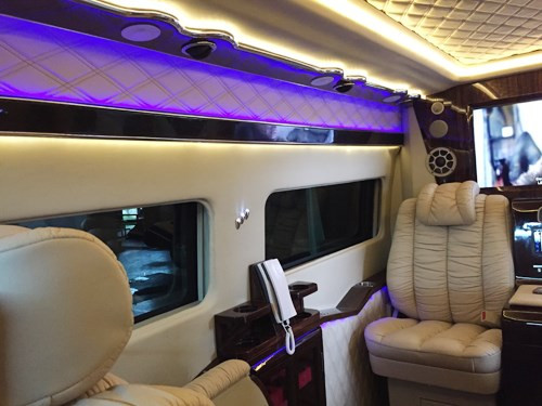 "Những phần chính trong việc độ nội thất xe được thực hiện tỉ mỉ gồm nâng cấp la phông, bọc da ghế, cải tạo hệ thống điện, âm thanh ánh sáng, ốp gỗ và ốp da nội thất, cách âm, cách nhiệt, trải thảm, trang bị thêm các thiết bị công nghệ riêng theo yêu cầu...", ông Long chia sẻ.