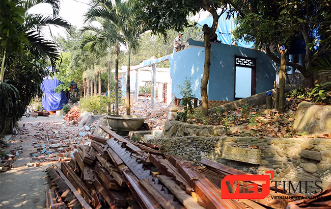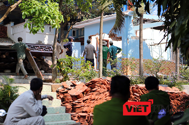 "Qua kiểm tra tại hiện trường, 10 công trình sai phạm thì đã có 5 công trình được tháo dỡ xong; 3 công trình đang được tháo dỡ dang; còn lại 2 công trình là nhà gỗ nhỏ, nhà sinh hoạt đang được xin để làm kho để giữ tài sản tháo dỡ ra và làm nơi ăn ở của công nhân phục vụ tháo dỡ", ông Đàm Quang Hưng, Phó Chủ tịch UBND quận Liên Chiểu cho biết.
