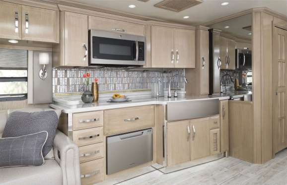 Khoang bếp được trang bị các tiện ích mới nhất và cung cấp nhiều không gian để tạo lên cảm giác một bữa ăn ngon miệngm phòng tắm chính có một bình nước nóng tankless đặc biệt cung cấp nước nóng không giới hạn. Một ngôi nhà di động hạng sang thực sự.