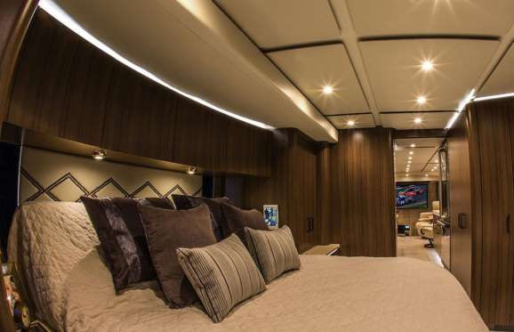 Phòng ngủ hoàn toàn riêng biệt cho một chuyến đi thoải mái đường dài nhờ một chiếc giường ngủ lớn cỡ King, nguồn ánh sáng theo tâm trạng blissed-out và TV Samsung màn ảnh rộng.