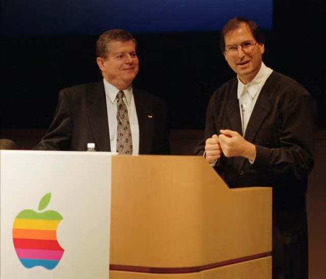 Năm 1997, Jobs trở lại vị trí CEO của Apple. Và trong sự kiện Macworld đầu tiên của mình, ông chia sẻ rằng ông chấp nhận khoản đầu tư từ Microsoft để Apple có thể tiếp tục phát triển. Khán giả ồ lên khi hình ảnh Bill Gates xuất hiện trên màn hình lớn.