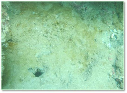 Trầm tích đáy một số điểm bị phủ lớp màng màu vàng – nâu sậm