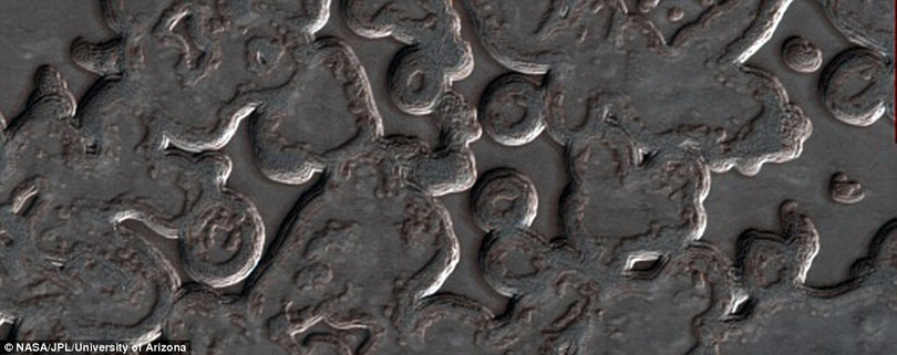 Các khối lằn địa chất uốn lượn tựa như một bức tranh trừu tượng được tạo ra vào mùa đông trên sao Hỏa khi khi carbon dioxide đông lạnh, ít nhận được ánh sáng mặt trời. Khu vực này còn chịu sự tác động của gió sao Hỏa thổi qua với tốc độ 400km/h.