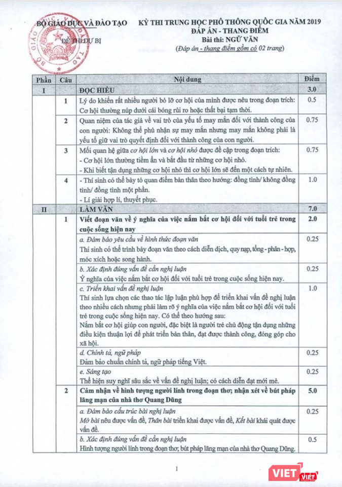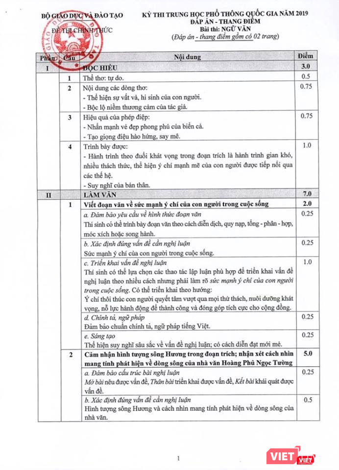 VietTimes -- Ngày 29/6, Bộ GD&ĐT đã chính thức công bố đề và đáp án môn Ngữ văn trong kỳ thi THPT quốc gia 2019.
