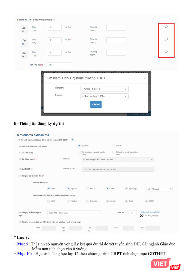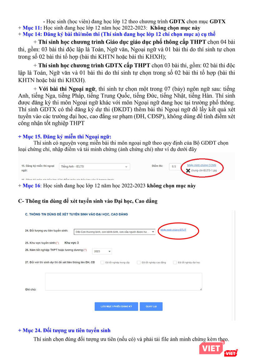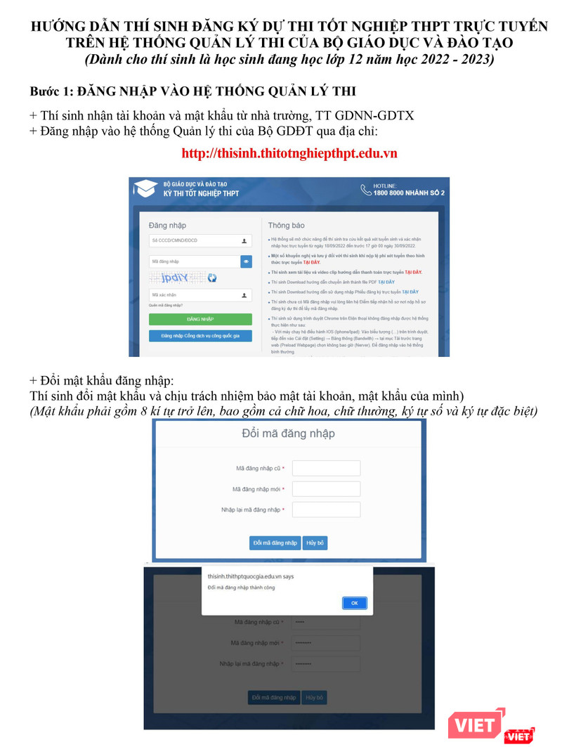 Các thí sinh đang học lớp 12 năm học 2022-2023 sẽ đăng ký dự thi trực tuyến trên Hệ thống quản lý thi và đăng ký xét công nhận tốt nghiệp trung học phổ thông trực tiếp tại trường. Học sinh chỉ đăng ký dự thi trực tiếp trong trường hợp bất khả kháng.