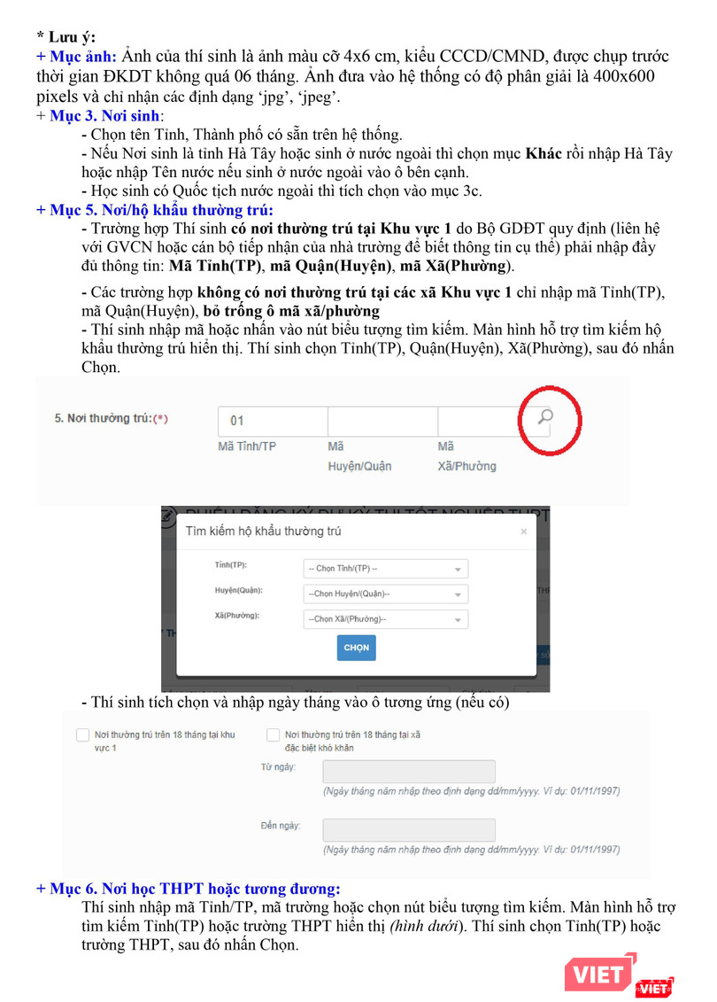 Khi đăng ký dự thi, thí sinh phải kê khai bảo đảm chính xác các thông tin về mã tỉnh, thành phố, mã trường phổ thông... theo đúng quy định. Sau khi kết thúc thời hạn đăng ký dự thi, thí sinh không được thay các thông tin về bài thi, môn thi đã đăng ký.