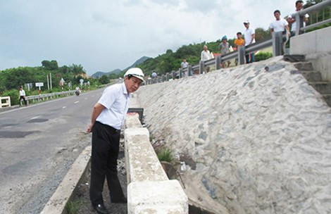 Thứ trưởng Bộ GTVT Nguyễn Hồng Trường thị sát kiểm tra quốc lộ 1 đoạn qua cầu Rọ Tượng thuộc xã Ninh Ích, thị xã Ninh Hòa (Khánh Hòa). (Ảnh chụp ngày 20-11) Ảnh: TẤN LỘC