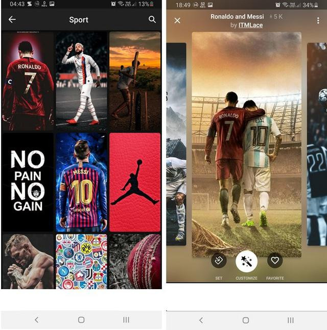 Sau khi đã chọn được một hình nền ưng ý, bạn nhấn vào hình nền đó trên giao diện ứng dụng và nhấn nút "Set". Ngoài ra, bạn cũng có thể chọn "Customize" để thiết kế lại hình ảnh, như thêm bộ lọc màu sắc, thêm văn bản, cắt/xén… trước khi sử dụng hình ảnh đó làm hình nền.