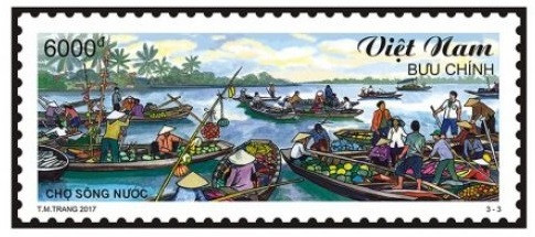 Bộ tem thể hiện 3 loại hình chợ đặc trưng gồm: chợ vùng cao, chợ làng, chợ sông nước với không gian và thời gian chủ yếu vào lúc bình minh.