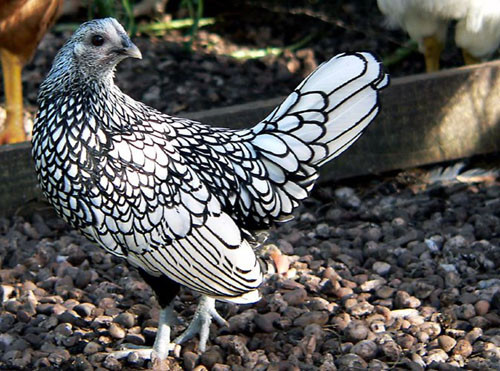 Có nguồn gốc từ Anh, hình dạng hơi giống gà tre Việt Nam nhưng giống gà này có bộ lông hình vảy cá nhìn khá độc lạ. Tuy chỉ có trọng lượng 300- 800g nhưng loại gà này đang được rao bán với giá dao động từ 800.000 đồng đến vài triệu đồng một con. Đặc biệt, với những chú gà màu sắc rực rỡ, cân nặng lý tưởng, dáng đẹp... giá có thể lên đến vài chục triệu đồng.