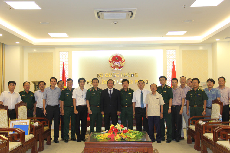Bộ trưởng Trương Minh Tuấn chụp ảnh lưu niệm cùng Lãnh đạo Bộ Tư lệnh Bộ đội Biên phòng
