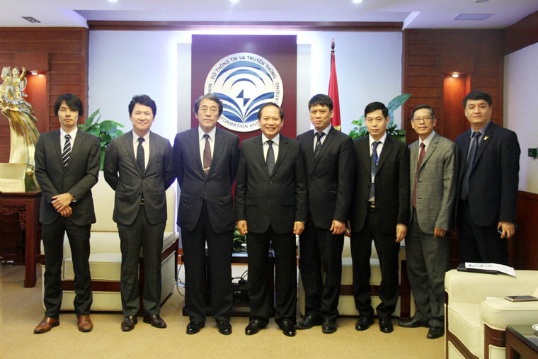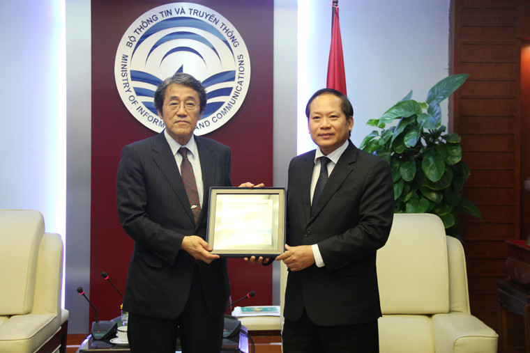 Bộ trưởng Trương Minh Tuấn giới thiệu và trao đổi thông tin với ngài Đại sứ những vấn đề hợp tác trong các lĩnh vực bưu chính, viễn thông, an toàn thông tin và xây dựng đô thị thông minh. Bộ trưởng nhấn mạnh: An toàn thông tin là vấn đề quan trọng hàng đầu của Việt Nam, mà Nhật Bản là quốc gia phát triển mạnh về lĩnh vực này, do đó phía Việt Nam mong muốn Nhật Bản hỗ trợ để các đề án về an toàn thông tin mạng sớm được triển khai.