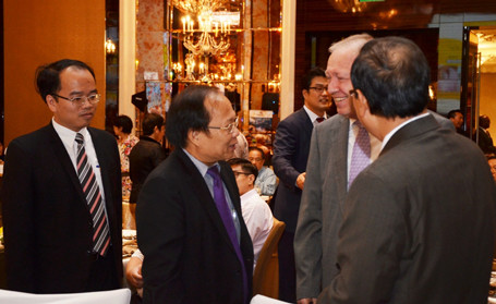 Bộ trưởng Hoàng Tuấn Anh trò chuyện với các khách mời đến dự chương trình quảng bá du lịch Việt Nam tại Singapore