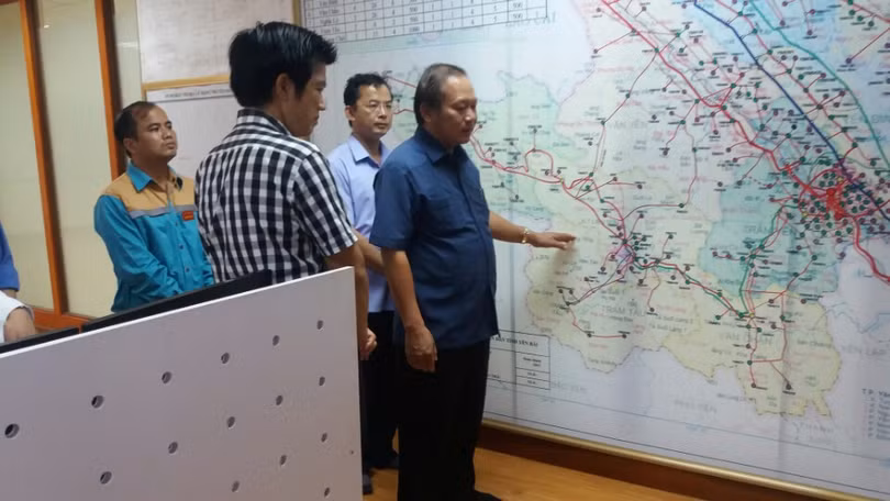 Bộ trưởng Trương Minh Tuấn trao đổi với các cán bộ của VNPT Yên Bái về tình hình phòng chống bão lụt tại địa bàn tỉnh.