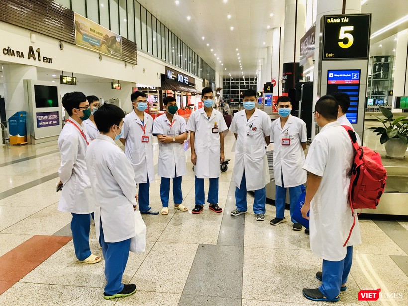 Các cán bộ của Trường Đại học Y Hà Nội túc trực hàng ngày tại sân bay Nội Bài để lấy mẫu xét nghiệm cho hành khách