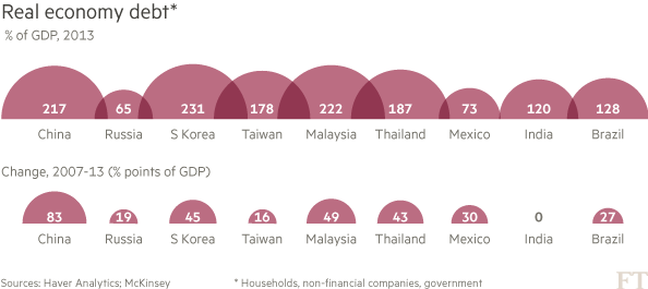 Tổng mức tăng trưởng tín dụng trên thị trường mới nổi trong 2007-2013 là 49 tỷ USD, chiếm 47% toàn thế giới. Con số này cao gấp đôi so với mức tăng trưởng vay nợ trong 2000-2007.