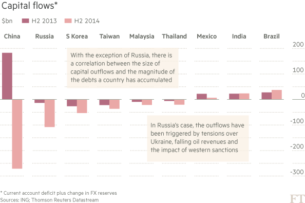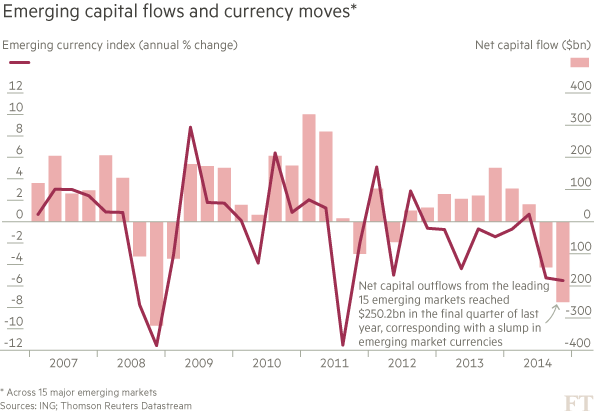 Số liệu tổng hợp của ING với 15 nền kinh tế mới nổi hàng đầu thế giới cho thấy dòng vốn đã bị rút ra trong nửa cuối năm 2014 với con số ròng 392,4 tỷ USD.