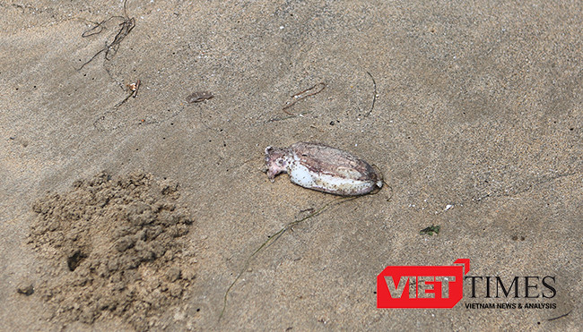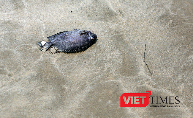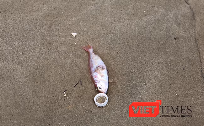 Tuy nhiên, theo ghi nhận của VietTimes, trên bão biển có những con cá to như: cá đối, cá hanh, chình biển, cá dìa biển,...bị chết hôi thối tấp vào bờ cùng với một số cá nhỏ mới chết cũng trôi dạt tại khu vực này.