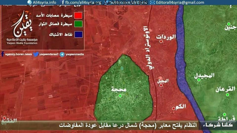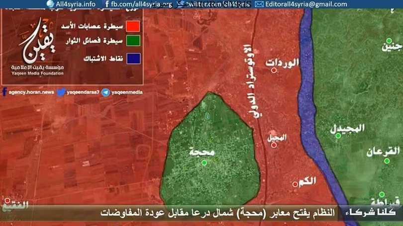 Trên chiến trường Daraa, quân đội Syria và Hội đồng địa phương ngôi làng Mahja (nằm gần đường cao tốc Daraa-Damascus) đạt được một thỏa thuận hòa giải. 1.000 tay súng thánh chiến trong làng được ân xá, trong đó có 350 tay súng là lính đảo ngũ từ quân đội Syria. Các chiến binh đã giao nộp vũ khí để được nhận các điều kiện ân xá và trở thành thường dân của chính quyền Syria.