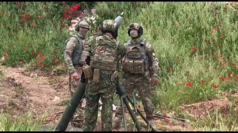 Các cố vấn quân sự, lính đánh thuê Nga của công ty quân sự tư nhân trên chiến trường Hama. Ảnh South Front