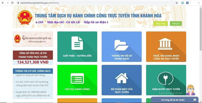 Tính đến thời điểm này, trên Trung tâm Dịch vụ hành chính công trực tuyến (DVHCCTT) của Khánh Hòa đã cung cấp 790 quy trình thủ tục hành chính trực tuyến mức độ 3,4; 494 quy trình thủ tục hành chính được cấp phép thanh toán trực tuyến do các sở, ban, ngành, UBND các huyện, thị xã, thành phố và UBND các xã, phường, thị trấn tiếp nhận và giải quyết. Trung tâm DVHCCTT đã ký kết hợp tác thanh toán trực tuyến với một số đối tác ngân hàng và ví điện tử. Những hình thức thanh toán trực tuyến phổ biến nhất hiện nay đều được triển khai qua Trung tâm như thanh toán bằng ví điện tử, thẻ ATM nội địa, QR-code, Internet banking, Mobile banking…