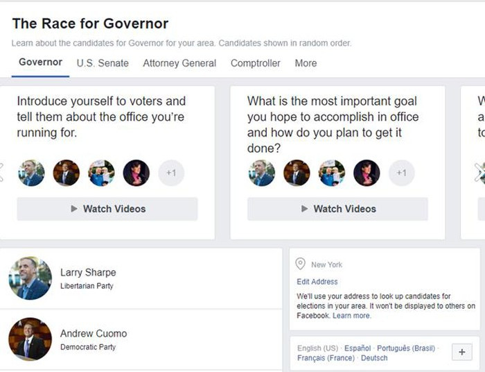 Bên cạnh những nỗ lực chặn tài khoản giả mạo, phát tán thông tin sai lệch, trong ngày bầu cử, Facebook còn phát hành những tiện ích thông tin có liên quan cho người dùng thông qua thẻ thông tin Bầu cử năm 2018 ( 2018 Election).