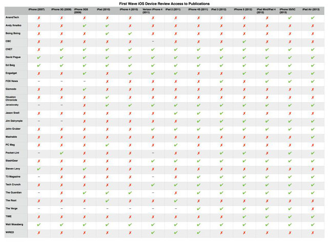 Danh sách các báo/ẩn phẩm được Apple gửi thiết bị sớm (tính đến trước 2014)