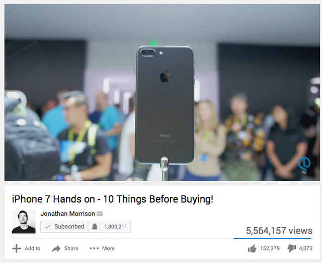 Một video trên tay sản phẩm sớm (trong trường hợp này là iPhone 7) có thể thu hút hàng triệu lượt xem