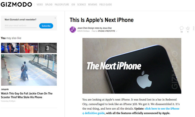 Bài viết nổi tiếng (và cũng tai tiếng) của Gizmodo về chiếc iPhone 4 bị đánh mất