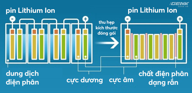 Điểm khác nhau biệt cơ bản giữa các viên pin Lithium Ion phổ biến hiện nay với pin thể rắn là một bên sử dụng dung dịch điện phân dạng lỏng để điều hòa dòng mang điện, trong khi những viên pin thể rắn lựa chọn chất điện phân thể rắn. Chất điện phân trong viên pin là một hỗn hợp hóa chất dẫn điện, cho phép dòng mang điện di chuyển giữa cực âm và cực dương.