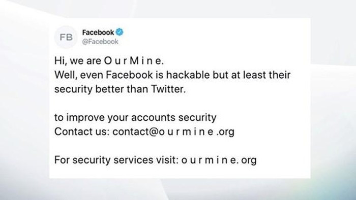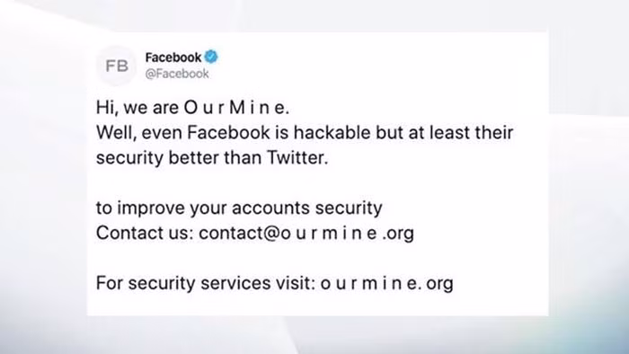 "Xin chào, chúng tôi là OurMine," bài viết cho biết. "Chà, ngay cả Facebook cũng có thể hack nhưng ít nhất bảo mật của họ tốt hơn Twitter."