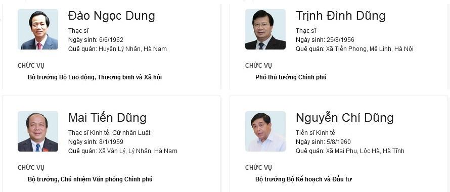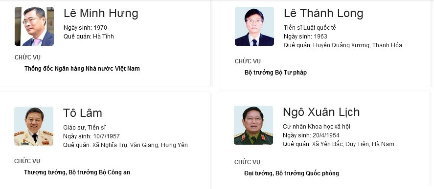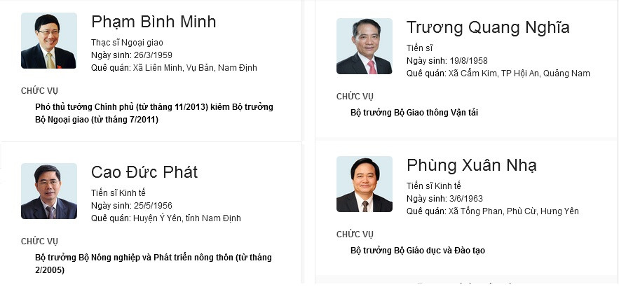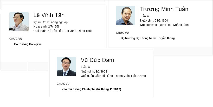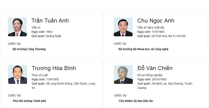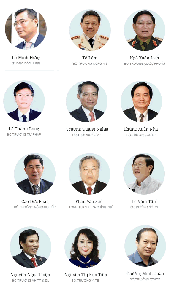 VietTimes -- Chính phủ mới (9-4-2016) do Thủ tướng Nguyễn Xuân Phúc đứng đầu có độ tuổi (56,2 tuổi), cao hơn Chính phủ do Thủ tướng Nguyễn Tấn Dũng đứng đầu (56 tuổi).