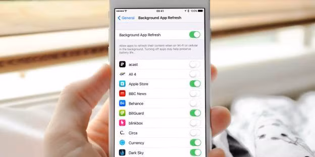 Nhiều ứng dụng chạy ngầm đặt chế độ refresh liên tục có thể khiến iPhone hao pin nhanh hơn. Để hạn chế điều đó, bạn vào Settings > General > Background App Refresh rồi nhấp chọn vào từng ứng dụng. Nếu ứng dụng nào không cần refresh ngầm, bạn nên tắt chế độ đó đi. Ngay cả ứng ụng e-mail và tin nhắn, khi tắt chế độ refresh chúng vẫn chạy tốt – chỉ có điều sẽ mất thêm chút thời gian để tải nội dung về, nhưng bù lại sẽ tiết kiệm được khá nhiều pin.