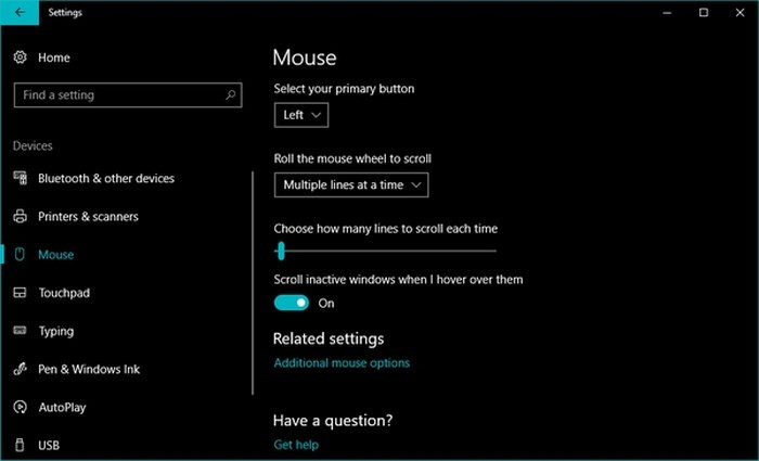 Một vài thiết lập liên quan đến chuột và bàn phím có thể cải thiện trải nghiệm chức năng chạy đa nhiệm Windows 10. Truy cập vào Settings > Devices > Mouse. Tại đây chuyển nút “Scroll inactive windows when I hover over them” về On. Điều này tiết kiêm thời gian khi bạn làm việc với nhiều cửa sổ cùng một lúc khi bạn không phải kích vào chúng để kích hoạt cuộn.