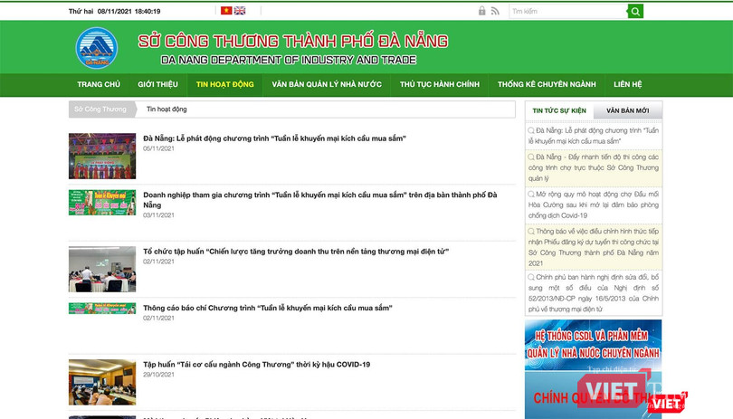 Ghi nhận của VietTimes tại thời điểm thực hiện cuộc khảo sát (ngày 8/11), bên cạnh các sở ngành thực hiện tương đối tốt việc cập nhật tin tức, chỉ đạo điều hành như: Sở Nội vụ (cập nhật mới nhất ngày 8/11/2021); Sở Tài chính (tin tức cập nhật mới ngày 1/11/2021); Sở Công thương (ngày 5/11/2021); Sở KH&CN (tin tức cập nhật mới ngày 3/11/2021)… thì vẫn còn nhiều sở ngành chưa thật sự có sự quan tâm đến việc đăng tải thông tin trên trang web của mình như: Sở Văn hoá-Thể thao cập nhật bài viết mới từ ngày 31/5/2021; Sở Xây dựng cập nhật tin tức mới nhất từ ngày 27/9/2021; Sở GTVT cập nhật tin tức từ 30/9/2021… Thậm chí như Sở tư pháp TP Đà Nẵng, tin tức mới cập nhật từ ngày 30/11/2020, tức cách đây gần 1 năm.