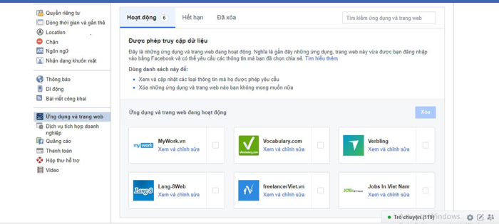 Truy cập vào phần Cài đặt của Facebook, bạn sẽ thấy mình đã cấp quyền cho rất nhiều ứng dụng do bên thứ 3 phát triển.Ảnh: Diệu Thảo