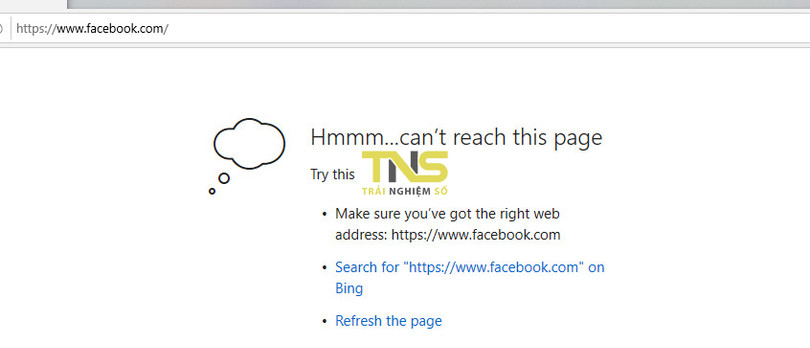 Bước 5: Lưu lại file hosts và hệ thống sẽ có tác dụng ngay. Lúc này khi vào trang web đó bằng Microsoft Edge, bạn sẽ thấy thông báo không truy cập được như ảnh dưới: