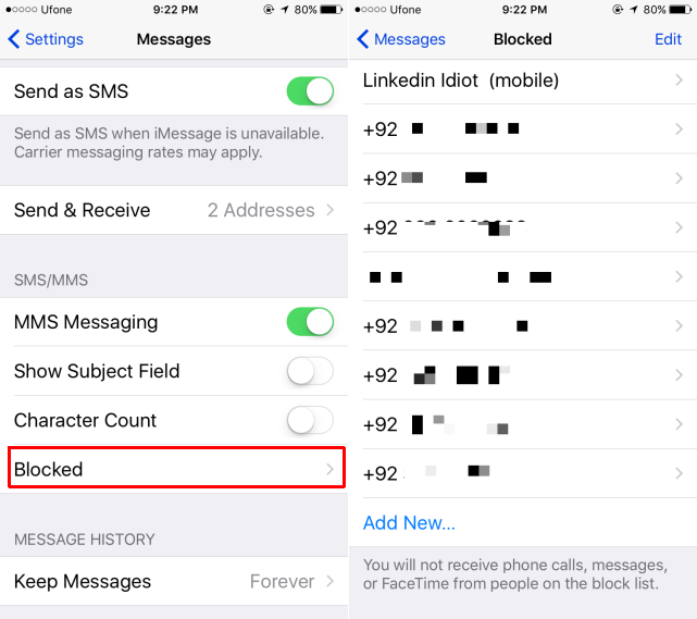 Rõ ràng, những thao tác này rất dư thừa bởi vì tính năng chặn đã làm việc rất tốt trên iOS 9 và không cần người dùng phải lưu số điện thoại mới vào danh bạ.