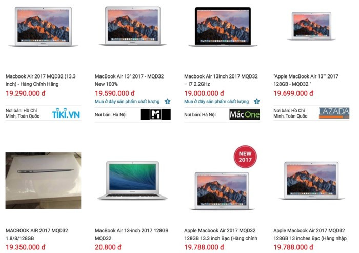 Theo đó, khi mua MacBook Air 13 inch (2017), bạn sẽ được giảm ngay 4 triệu đồng. Cụ thể, phiên bản MacBook Air 13 inch (ổ cứng 128 GB) sẽ có giá 19,99 triệu đồng. Tương tự, phiên bản có ổ cứng 256 GB đang được bán ra với mức giá 24,99 triệu đồng. Cả hai mẫu thiết bị này đều đã được giảm 4 triệu so với giá trước đó.
