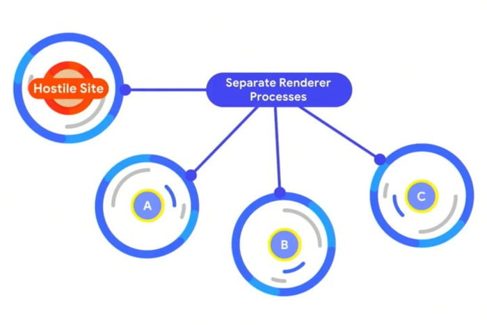 Cách ly trang web là một công cụ hữu hiệu khác để chống lại Spectre. Về cơ bản, nó sẽ cách ly "cái tốt" từ nguồn "xấu" bằng cách chỉ định mỗi nguồn với quá trình render của riêng nó. Thế nên, các nguồn sẽ được tách việc với nhau và được bảo vệ chống lại bất cứ nguồn nào "nguy hiểm". Nguồn nguy hiểm sẽ chỉ có thể đọc được dữ liệu của chính nó.