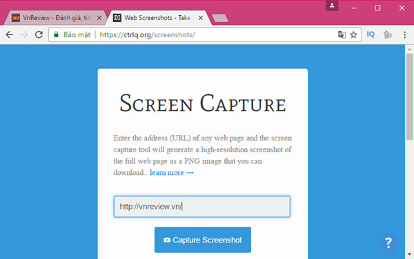 Đây là phương pháp chụp màn hinh website hay nhất trong trường hợp bạn không muốn cài đặt bất cứ thứ gì trên máy tính hoặc đang sử dụng một máy tính lạ nào đó. Website cung cấp công cụ này chính làctrlq.org và web-capture.net.