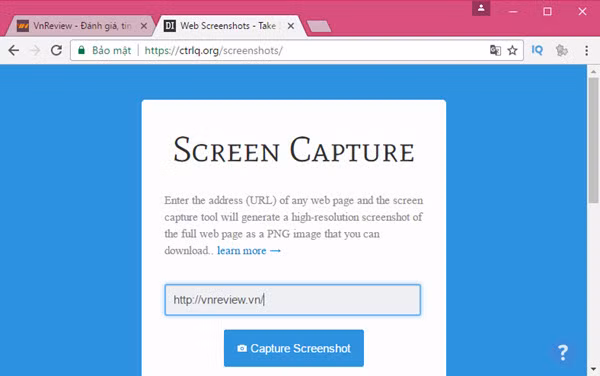 Chụp màn hình website bằng công cụ trên website
