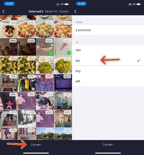 Bước 5: Từ trình đơn sau đó, bạn có thể chuyển đổi ảnh HEIC sang JPEG, PNG, hoặc PDF.