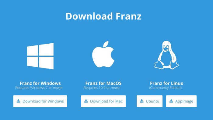 Franz có giao diện và cách thức sử dụng khá giống các ứng dụng bên trên, do đó sẽ không khó để người dùng làm quen. Mỗi khi có tin nhắn mới, nó sẽ được đánh dấu bằng các con số màu đỏ ngay trên từng dịch vụ, giúp người dùng không bỏ lỡ bất kỳ tin nhắn quan trọng nào từ bạn bè. Franz hiện đang được cung cấp miễn phí tại địa chỉ http://bit.ly/franz-1, tương thích Windows, macOS và Linux.