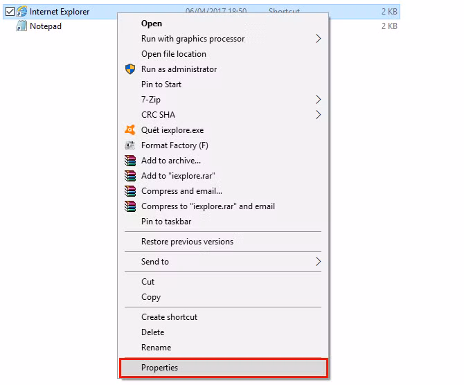 Bạn phải thêm lệnh vào shortcut nếu muốn khởi động với chế độ ẩn danh mặc định trên Chrome. Trước hết, xác định shortcut được dùng để mở Chrome (desktop, taskbar hoặc Start Menu). Nhấn chuột phải vào shortcut -> Properties.