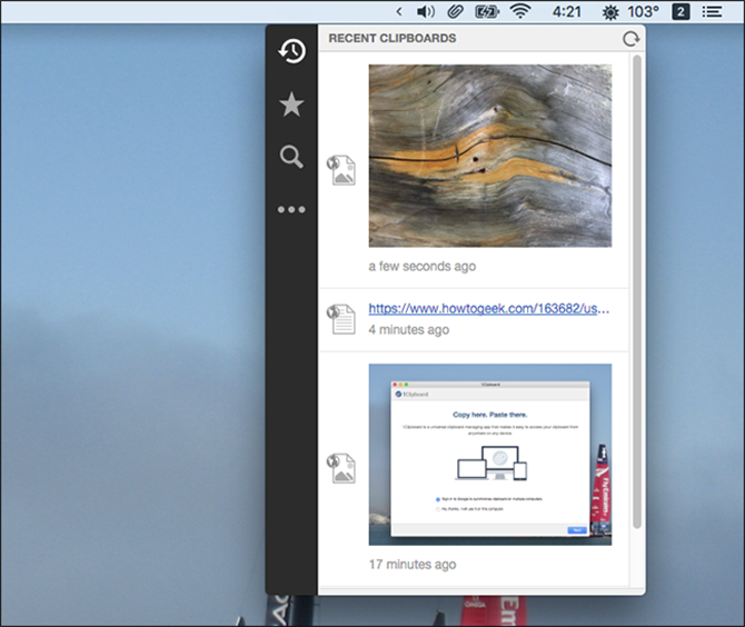 Khi thứ bạn cần copy đã hiển thị trong 1Clipboard thì bạn chỉ cần bấm vào nó để đưa nó vào clipboard của hệ thống. Bạn có thể đánh dấu sao cho những thứ này để dễ tìm lại khi cần thiết. Để xem các mục đã được đánh dấu thì bạn bấm vào nút hình ngôi sao ở thanh bên màu đen bên trái.