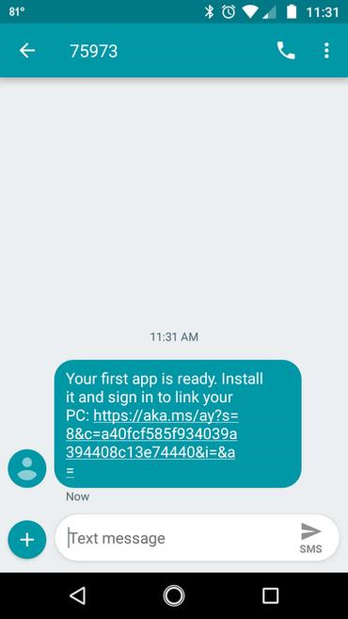Kích vào đường dẫn trong tin nhắn, ấn nút cài đặt và đợi cho đến khi hoàn thành. Khi ứng dụng được cài đặt, bạn sẽ được yêu cầu nếu bạn muốn chuyển từ giao diện ứng dụng Android sang giao diện Microsoft Launcher mà bạn vừa cài đặt.
